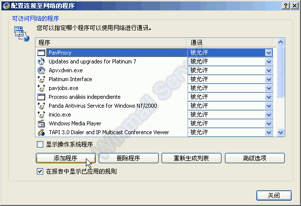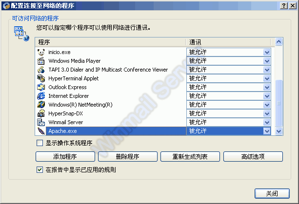 (6)添加Winmail Server安装目录下的MailServer.exe和Apache.exe并给予允许访问网络权限