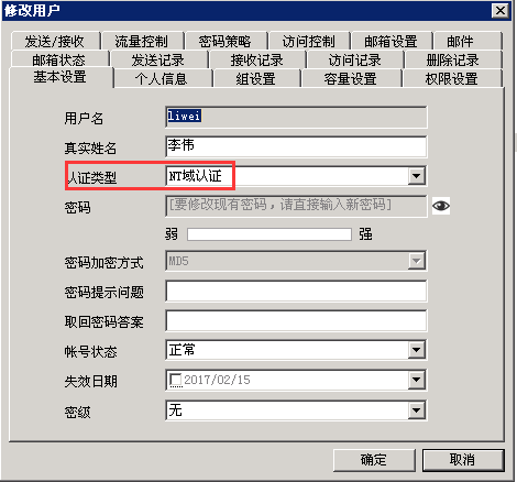 对于整合认证的账号,Winmail 系统中将不能再设置和修改密码,如果要修改密码,请修改用户 AD 中密码。