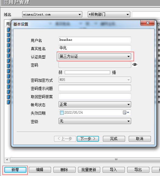 使用 LDAP 协议方式连接,可以直接配置导入用户,也可以实现 AD 和 Winmail 在不同物理网络时的整合,增加用户到 Winmail 中有两种方式,分别是单个新增、自动同步。