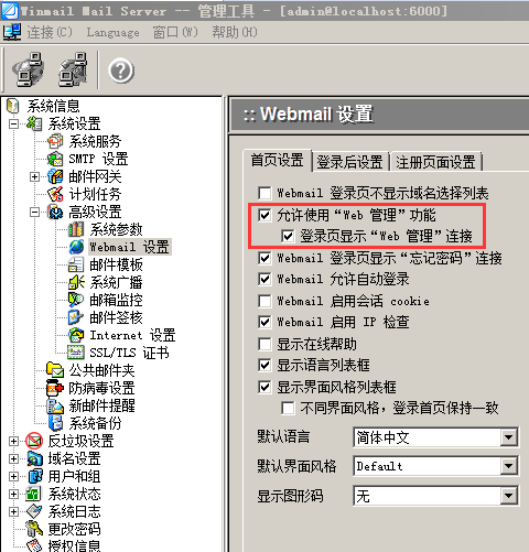 在网页邮箱登陆页面,点击“Web管理”,使用管理员帐号和密码登陆,点击“邮件归档”