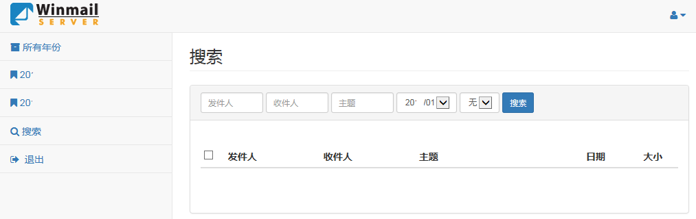 点击搜索,可以按照发件人、收件人、主题、邮件日期搜索归档邮件