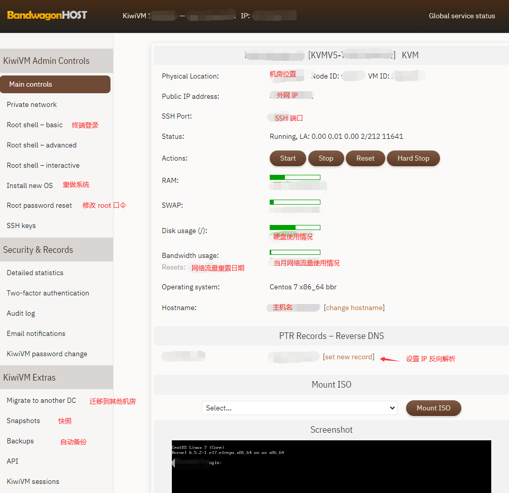 5. 在控制面板 KiwiVM 里设置 PTR Records (Reverse DNS) IP 反向解析,参考 IP 反向解析