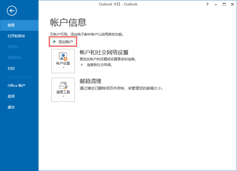 在 Office Outlook 里添加个人的邮箱帐户。打开文件 > 添加帐户。