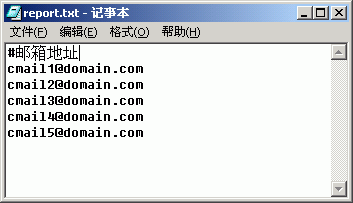 1.CMailServer 5.2可选择性生成用户信息报表,导出的文件格式支持htm,ini,csv和txt四种。由于不支持密码导出,所以我们只需导出邮件地址即可,即CmailServer 5.2信息报表中的“E-mail热连接”,生成文件格式选择为txt。