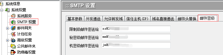 Winmail 管理工具》系统设置》SMTP设置》邮件密级