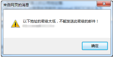 当收件人中有用户密级低于设置的邮件密级,点击发送后,系统会提示“以下地址的密码太低,不能发送此密级邮件”