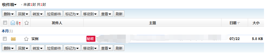 收件箱查看邮件,邮件主题会有标记邮件密级。