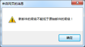 当降低邮件密级发送邮件时,系统会提示“新邮件的密级不能低于原始邮件的密级”。