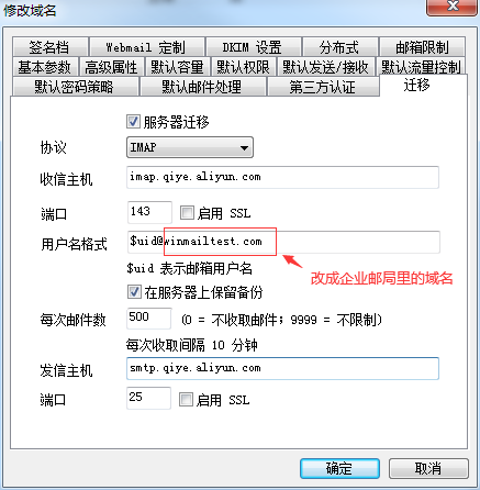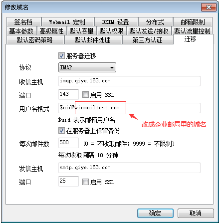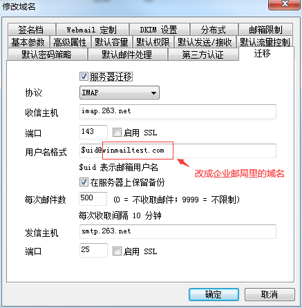 注意:如域下的用户帐号全部迁移到 Winmail 后,应该取消上面的这些设置选项