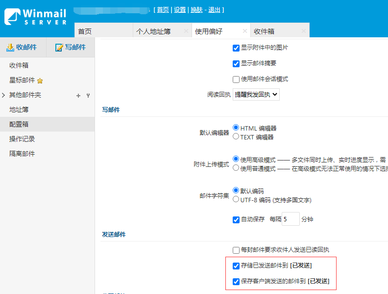 首先,网页发信时,必须选择以下的选项以便保存已发出的邮件到【已发送】中