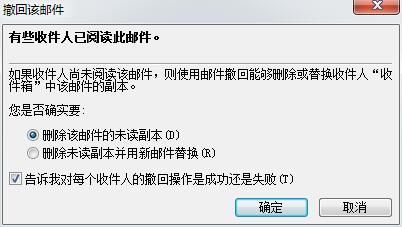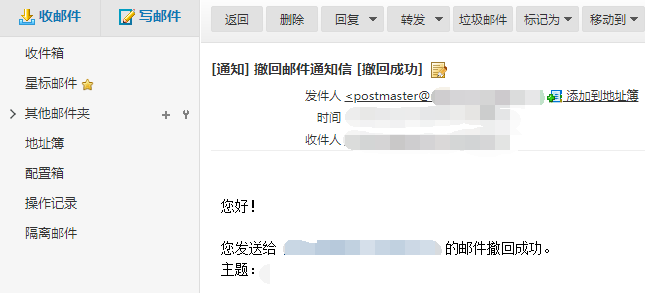 撤回邮件结果:内部撤回,系统发邮件告知撤回邮件操作是否成功。