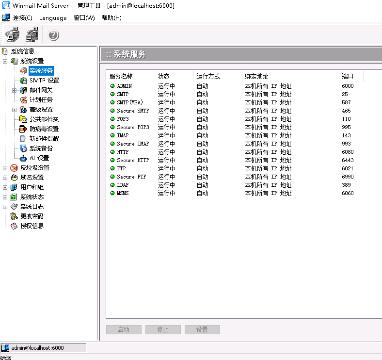邮件系统的管理可以通过专门提供的管理工具程序和 Web 管理两种方式。管理工具功能全面可以管理全部系统设置,支持远程管理。 Web 管理可以管理邮箱和域名基本设置。
