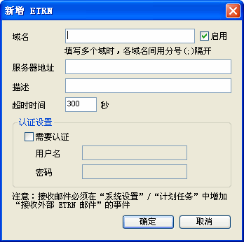 生效条件:在"计划任务"中,必须有一条“接收外部 ETRN 邮件”的事件。