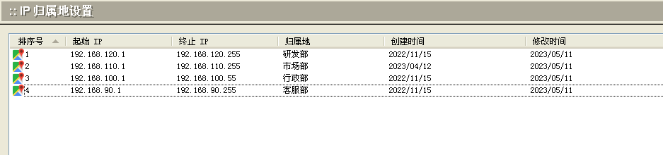 设置 IP 地址对应的归属地。对于IP 归属地库中标记不正确的 IP 地址,可以设置正确的归属地进行修正。