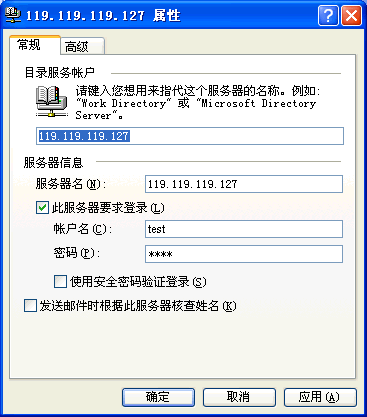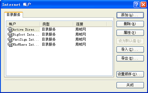 增加公用地址簿主机:菜单上“工具” -> “帐户...”