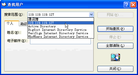 用户可以在Webmail中查看到公用地址簿中的用户信息。也可以通过邮件客户端软件来查看。前者在比较简单,在此不作详述。在此主要以Outlook Express来说明后者的设置与使用。
