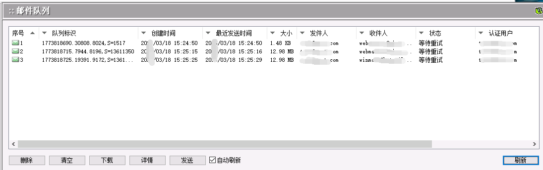 清空: 删除邮件队列中的所有的邮件。