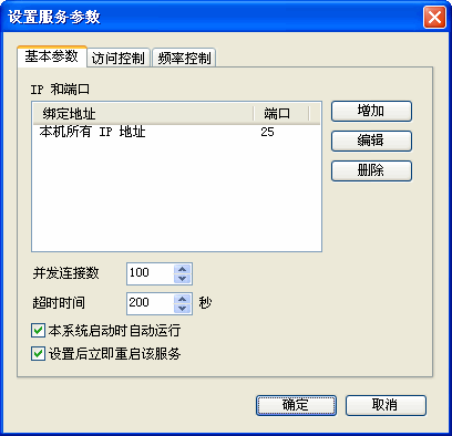 对选定的服务进行参数设置,如更改绑定 IP 地址,监听端口,存取控制设置等。