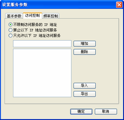 | 禁止以下 IP 地址访问服务 | 列表框中的 IP 地址不允许访问该服务。限制某一段的 IP 地址,如 192.168.0. 这个网段的所有 IP,可以输入 192.168.0.即可。 |