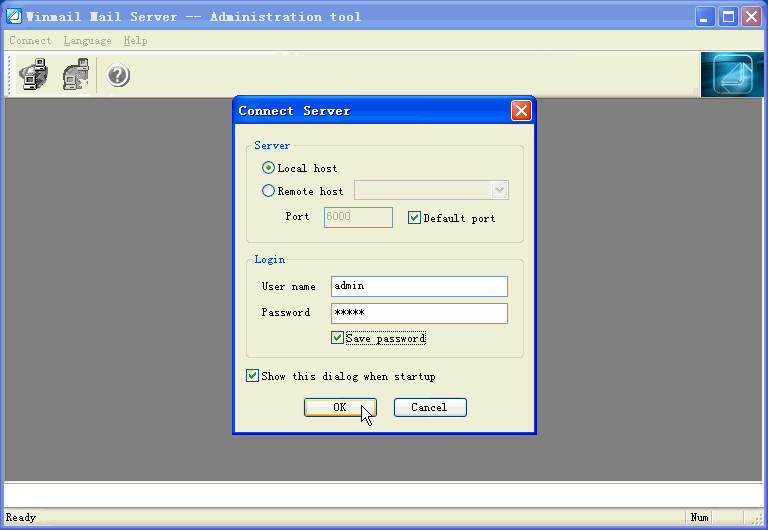 3.To display this login window automatically when starting up, click the checkbox.