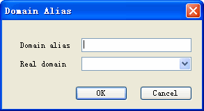 To add a domain alias, click the Add button at the bottom of the screen. The following dialog box will appear.
