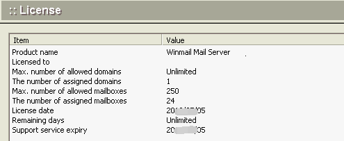 | Product name | The version and build number of the Winmail Server software you are using. |