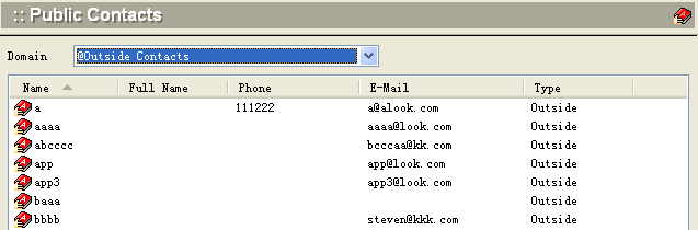 To work with public contact information, select Public Contacts from the Users and Groups screen. The following screen will appear.