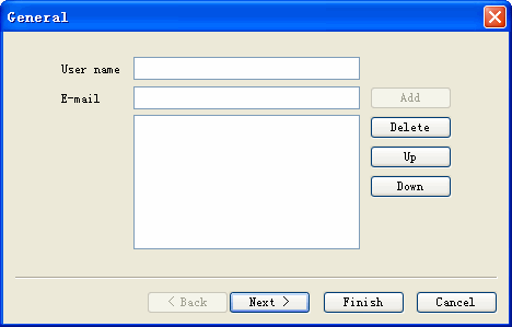 - Enter user name and email address. .Email addresses will be listed in the order shown. Use the Up or Down button to change the priority order.