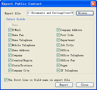 - Select the fields to be included in the exported file by checking their boxes.