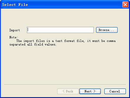- Click the Browse button to select the file to be imported.