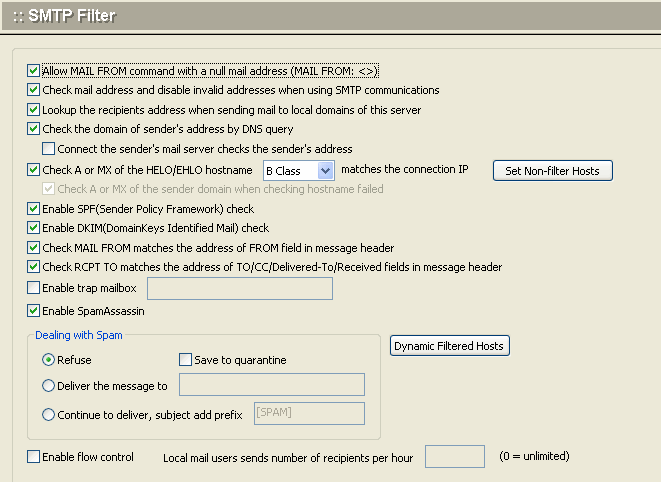 | Enable SPF(Sender Policy Framework) check | Check this box to enable SPF check. http://www.openspf.org/ |