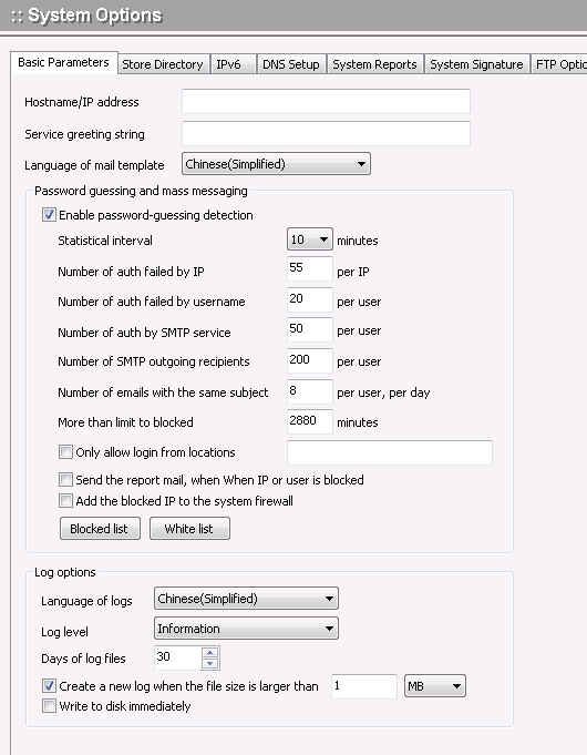 | Number of auth failed by username | The maximum number of times is authentication failed by a mail user, can effectively prevent guessing the password of a mail user |