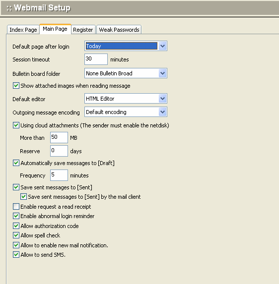 | Webmail session cookie | Check this box to allow the session cookie when login webmail. |