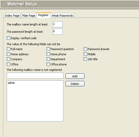 | Allow web-based server administration | Check this box to enable Winmail server administration via the web. |