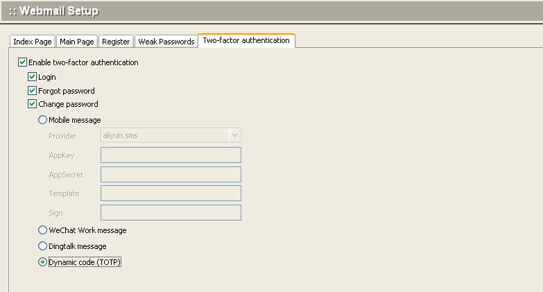 | Webmail IP check | Check this box to allow the checking the client IP when logined. |